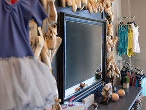 dancewear merchandise in front lobby for younger students